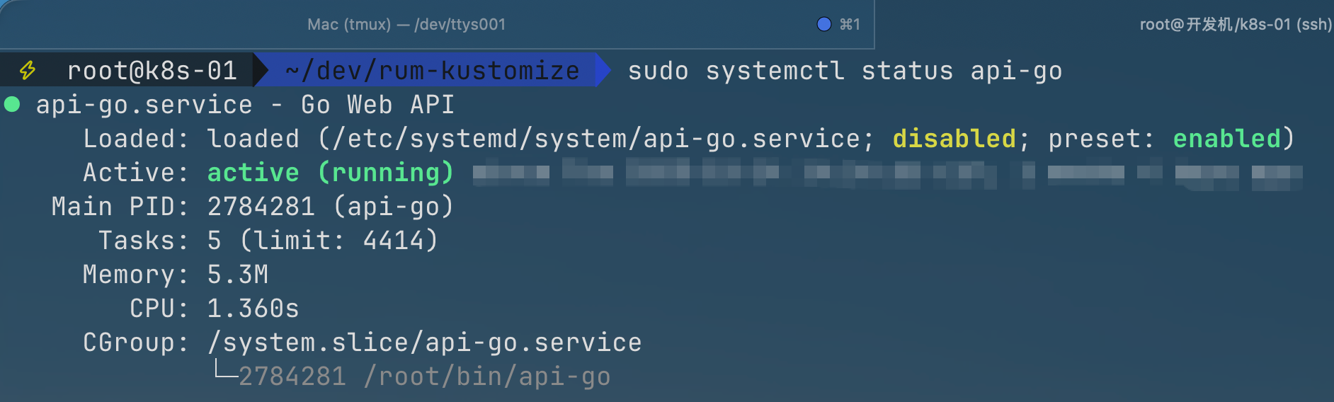 sudo systemctl status api-go